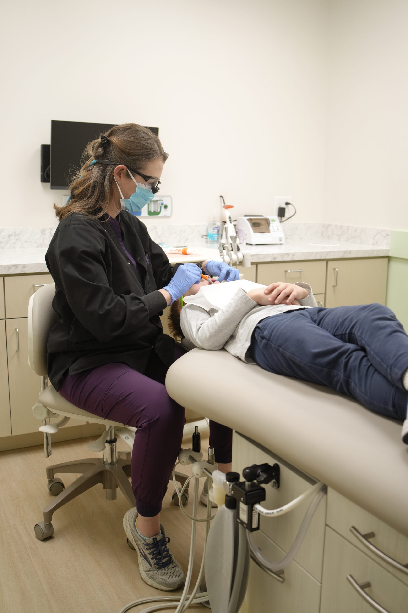 Our calm, kid-friendly environment features private treatment rooms that can accommodate children who need quiet spaces, and we always move at your child’s pace. No treatment is performed during the first visit unless there’s an urgent need – instead, we focus on getting acquainted and creating a foundation of trust and understanding.